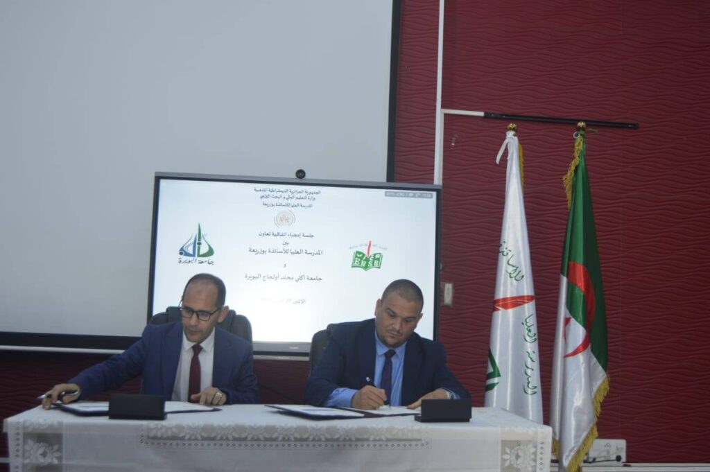 Today, Monday 27 April 2026, a cooperation and partnership agreement was signed in the school’s new auditorium between the Higher Institute for Teachers in Bouzareah, represented by the Director of the Institute, Dr #Mohamed_Abdel_Moneim_Brich, and Akli Mohand Oulhaj University in Bouira, represented by the University Rector, Prof. Dr #Larqat_Ali. The ceremony was attended by the school’s administrative staff, including the deputy directors, the secretary-general, heads of departments, and administrative and technical staff.