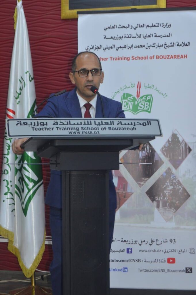 The Director of the Higher Institute for Teachers in Bouzareah opened the session with a welcome address to those present, emphasising the importance of this agreement and the benefits it will bring to the school community in terms of scientific and academic exchange between the two institutions. He was followed by the Rector of the University of Bouira, who spoke about the agreement, highlighting his pride and honour at his association with the Higher School for Teachers in Bouzareah. He presented some statistics and outlined the facilities the school would be able to utilise in future under this agreement with the University of Bouira, welcoming the entire school community to his prestigious university. He concluded his speech by wishing Dr #Mohamed_Abdel_Moneim_Bresh every success in his duties and career at the school. The school was also honoured for the first time by the Rector of the University of Bouira signing the school’s guest book, whilst the Assistant Director in charge of Media and External Relations, Mr # Al-Eid_Qurishi, read out the main points of the agreement to the assembled audience, highlighting its importance in terms of academic exchange between the two universities.