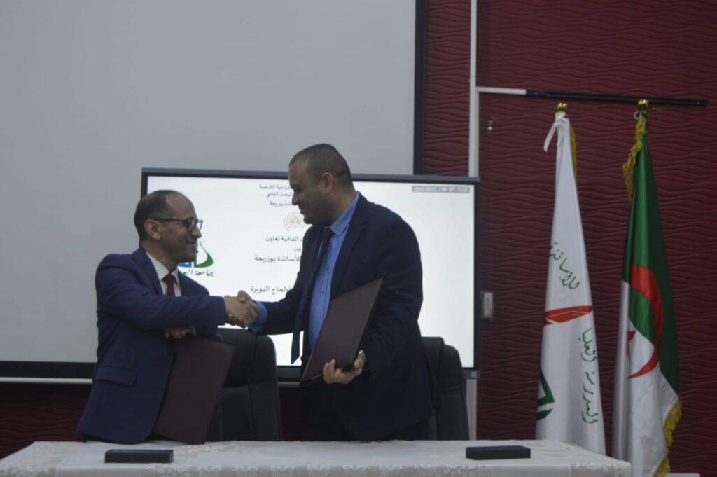 At the conclusion of the signing ceremony, the Director of the Higher School for Teachers in Bouzareah presented the Rector of the University of Bouira with a medal of gratitude and appreciation bearing the school’s official emblem as a memento of the agreement.