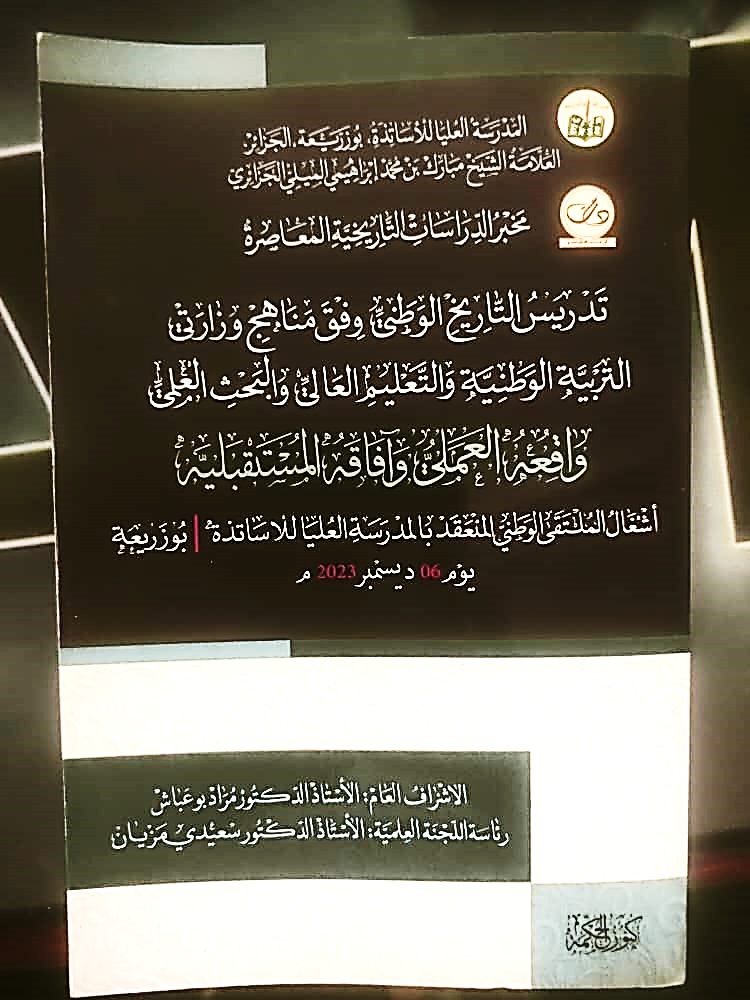 1. الاستراتيجيات الحديثة لتدريس التّاريخ الوطني ومجالات تطبيقاتها في منظومة التّعليم الجزائرية (وزارتا التربية الوطنية والتّعليم العالي والبحث العلمي) (أ.د سعيدي مزيان )