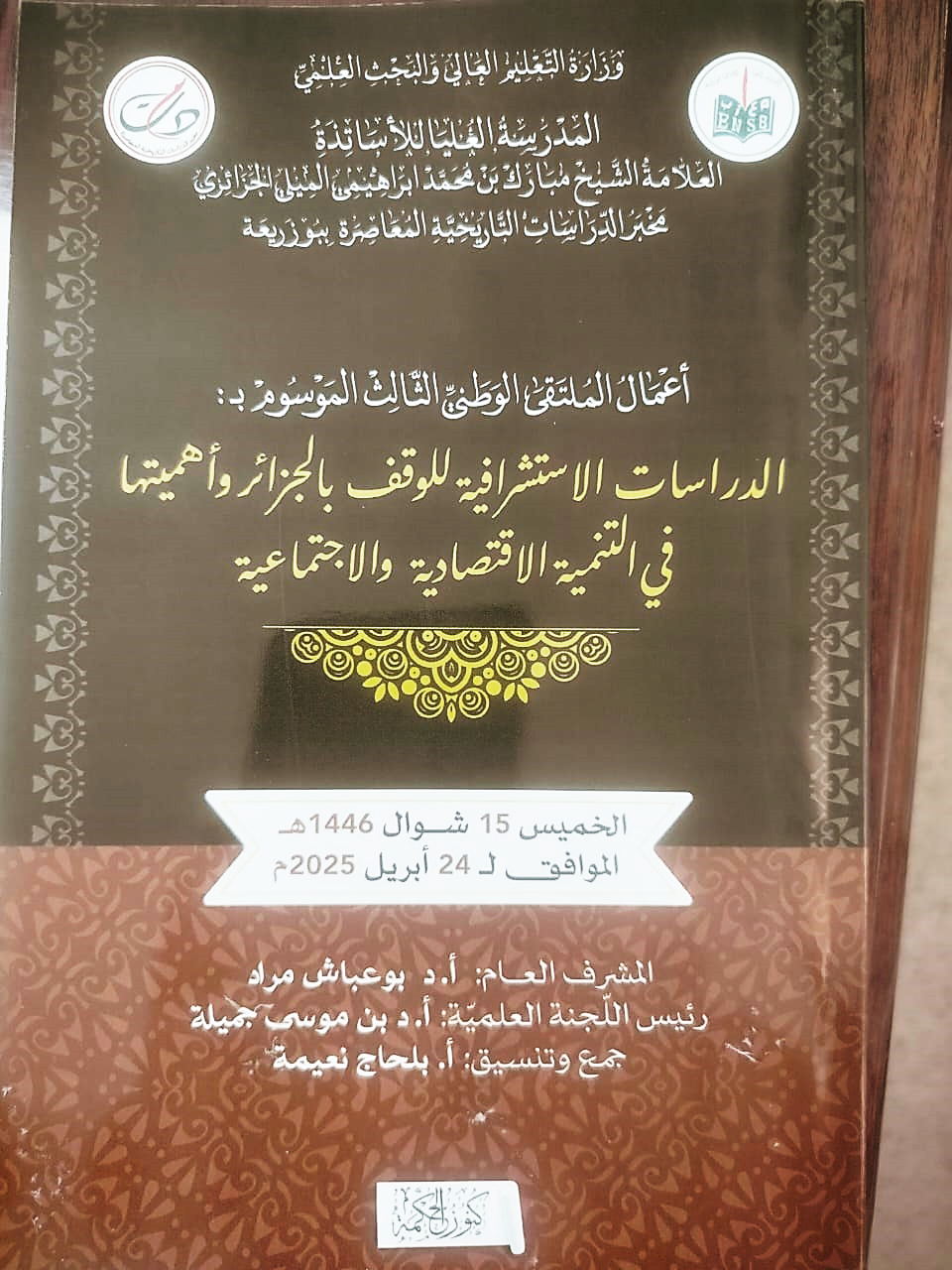 3. تاريخ النظام الوقفي بالجزائر في العهدين العثماني والاستعماري (الوقف ما بين الوظيفة الاجتماعية والتنمية الاقتصادية) ( أ.د. بن موسى جميلة )