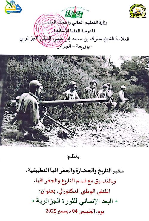 ملتقى وطني دكتورالي بعنوان : ” البعد الإنساني للثورة الجزائرية “