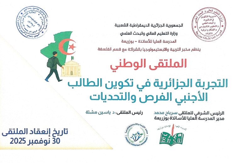 ملتقى التجربة الجزائرية في تكوين الطالب الأجنبي الفرص و التحديات ” المنظم من قبل مخبر التربية و الابستيمولوجيا بالشراكة مع قسم الفلسفة